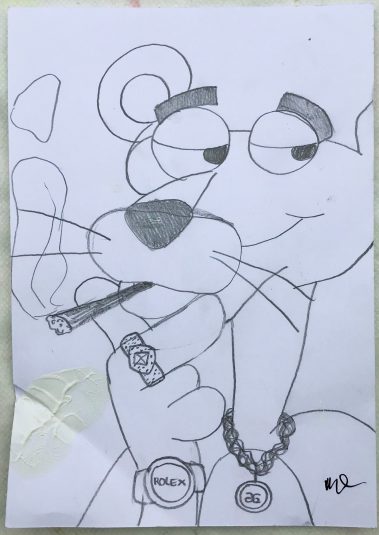 Pink Gangsther Acrylverf, verfstift, pouringmedium en 3D liner op canvas. Stempeltechniek met halve citroen, mandarijnennetje en bubbeltjesplastic. Druiptechtiek met een spuitje. 40×60 cm Oktober 2021 Project navigationVorigePrevious project:Two FacedVolgendeNext project:Fragile Industry